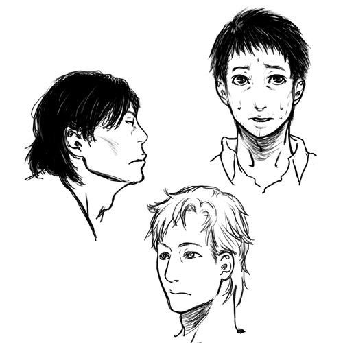 京・極の妖怪シリーズの主要人物三人です。というか関口君が描きたかっただけで、ほか二人はおまけ。