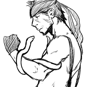 将来の息子(蛇)たちの名前を冠した白蛇が最愛の人との戦いの場で捕獲できるってのがとても意味深だなと思って描いてみました。ものすっごく美味しかったみたいです。息子喰うなよ。