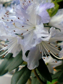 石楠花です。デデンと近くで見ると百合を思わせる花弁ですが、花手毬のように集まって花を咲かせてます。これは植木鉢のものなので実際は拳ほどの大きさもありません。薄い青紫が儚くて美しいです。