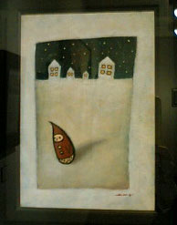 ご本人は画家というより「えかき屋」と自身を称していらっしゃいましたが、なんとなくそのネーミングがいいなぁと思いました。作品は総て独学だそうです。そのためか、全く構えなくて見たまま雰囲気がつかめる作品ばかりでした。